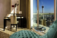 Located within walking distance of the city´s most famous hotels such as Bellagio, the Venetian, Wynn, the Mirage and Caesars Palace, the modern penthouse at Turnberry Place encompasses more than 12,000 square feet, including over 3,000 square feet of wrap-around terraces offering dazzling 360-degree views of the city and surrounding desert mountains.